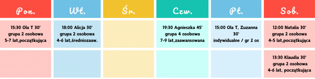 W miejscu zajęć indywidualnych możliwe jest stworzenie grupy 2 osobowej dla rodzeństwa.